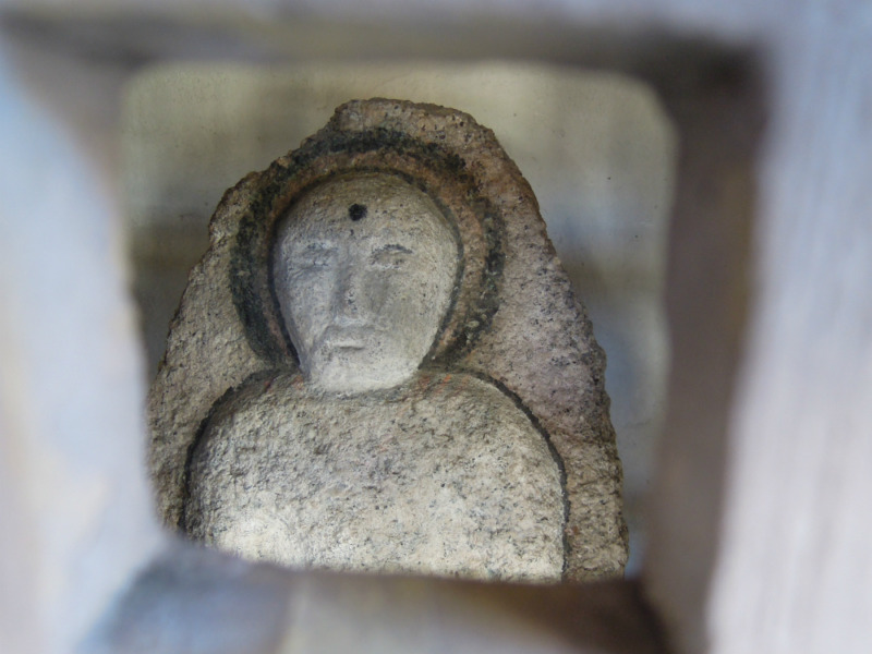 白毫(びゃくごう)もしっかりのお地蔵さん。後光もさしてます。左上が欠けているのは何かドラマがあったのでしょうか。
