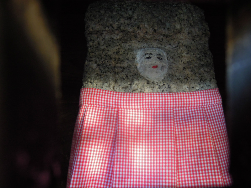 中には赤い口紅の可愛らしいお地蔵様。おべべは赤のギンガムチェック☆
