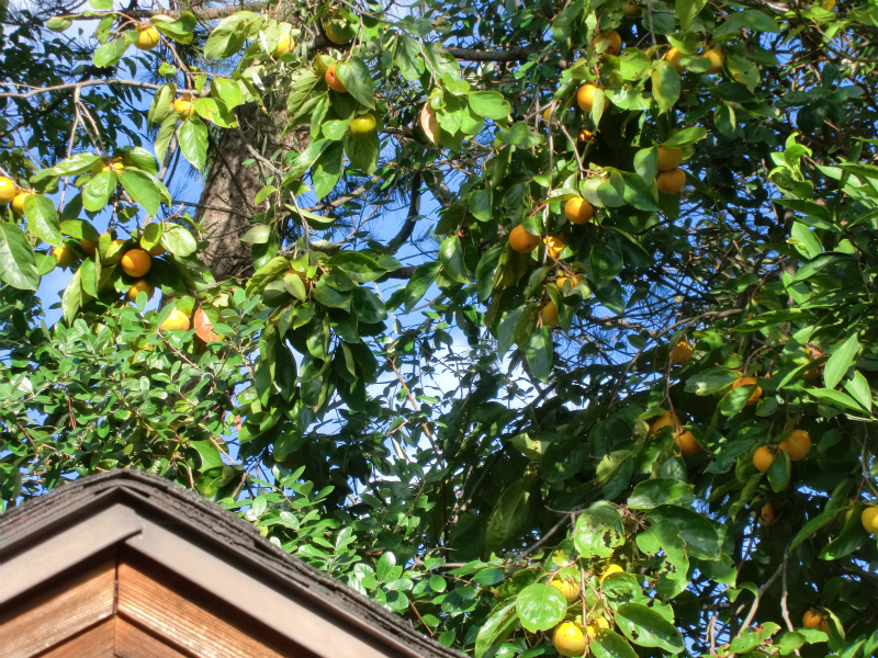 この階段を上れば透き通った秋の空に青き賀茂川が流れているのです。こういうちょっと曲がっている階段、好きです。ミカンの木も素敵に実をつけています。