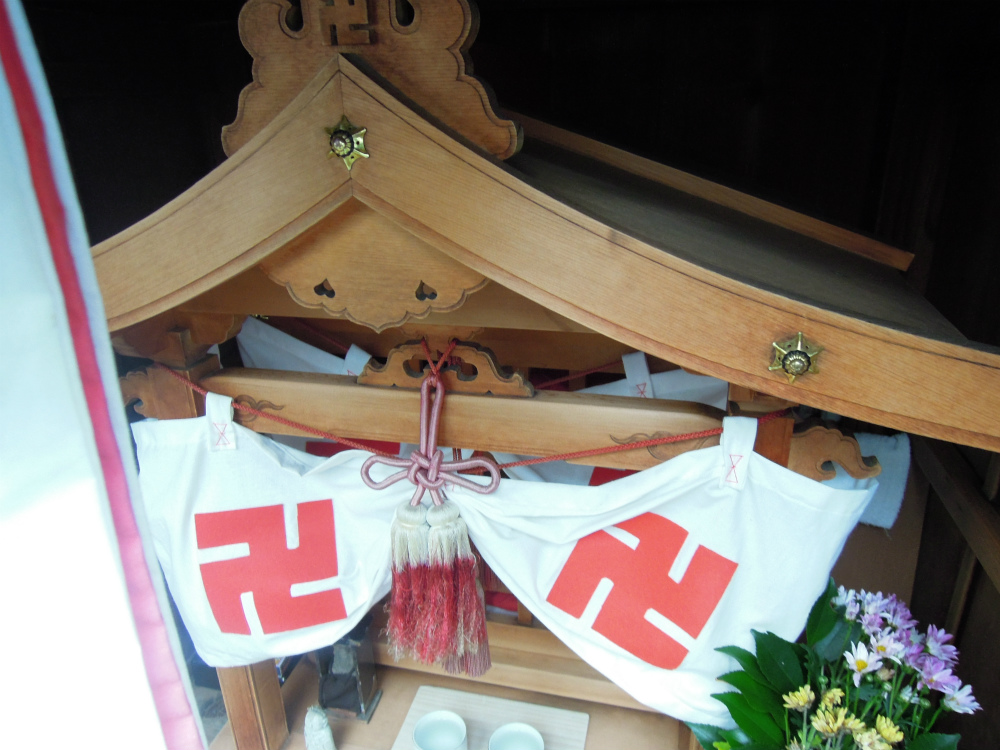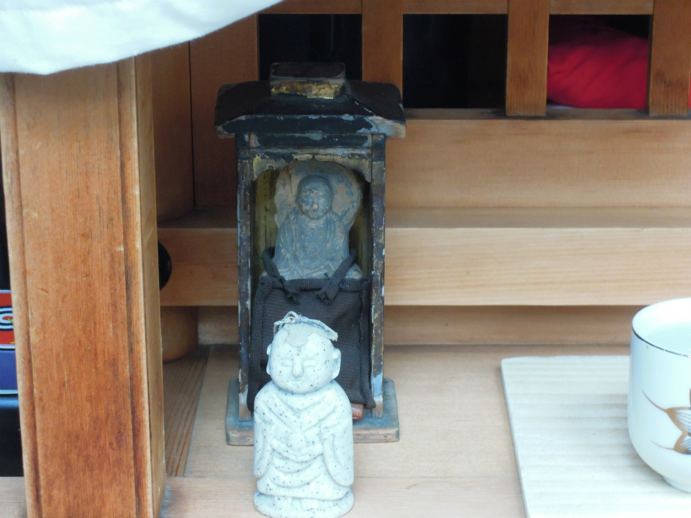 お地蔵さんの外側にも小さなお地蔵さんと、どなたかの位牌の人形?それとも持ち運び用のお地蔵さんでしょうか。