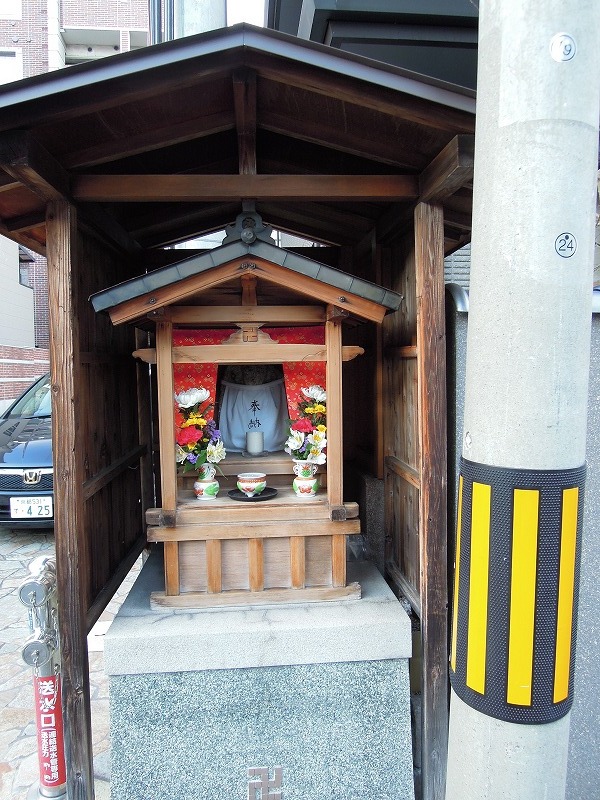 そんな元、誓願寺のあった道の脇にいはったお地蔵様。祠の外に更に屋根、壁。