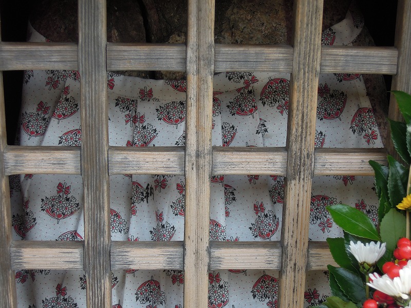 残念ながら金襴ではありませんでした。花柄のプリント地です。でも、お地蔵さんのお顔が素敵なので載せてみました。