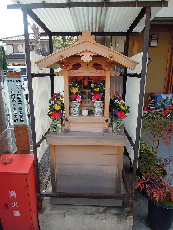 今日は京都市上京区中長者町通新町東入ル東長者町のお地蔵さん。「京都市上京区中長者町通新町東入ル東長者町」って何!?この呪文は地名?と思われる方もいらっしゃるでしょう。とても便利なんですよ。これを訳すと、「京都市の上京区、中長者町通り(東西の通)と新町通り(南北の通)を新町通りから中長者町通りを東側に曲がると東長者町という町内があるからね」という地名です。もう、呪文。でも便利でございます。