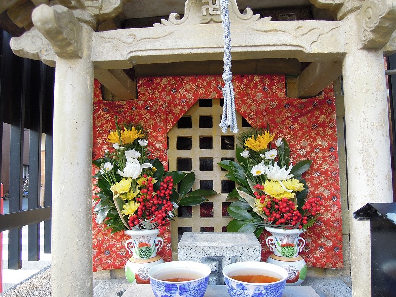 こんにちは。岡本織物です。京都西陣で毎日金襴という布を織っています。私は金襴屋なのでどのような場所で金襴が使われているのか知りたい!我が社の金襴に出会えたらかなり嬉しい!と思って金襴を探して歩いています。金襴は主に神社仏閣に使われている事が多いので自然と神社やお寺、京都に多いお地蔵さんに使われている金襴地を探して歩いています。