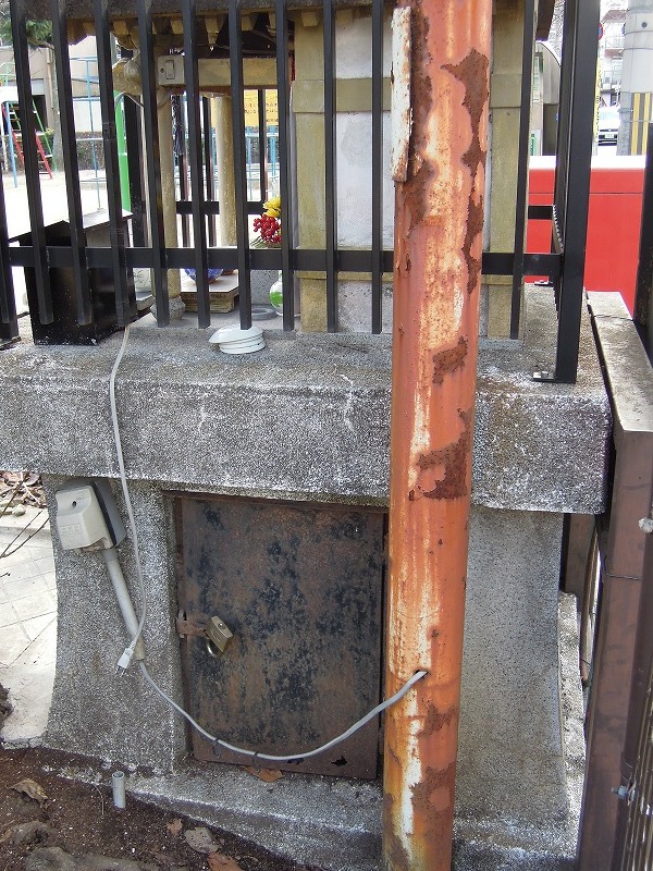 賽銭箱はたぶんこのお地蔵さんの北側の戸を開けたら回収できるようになっているのだと思います。