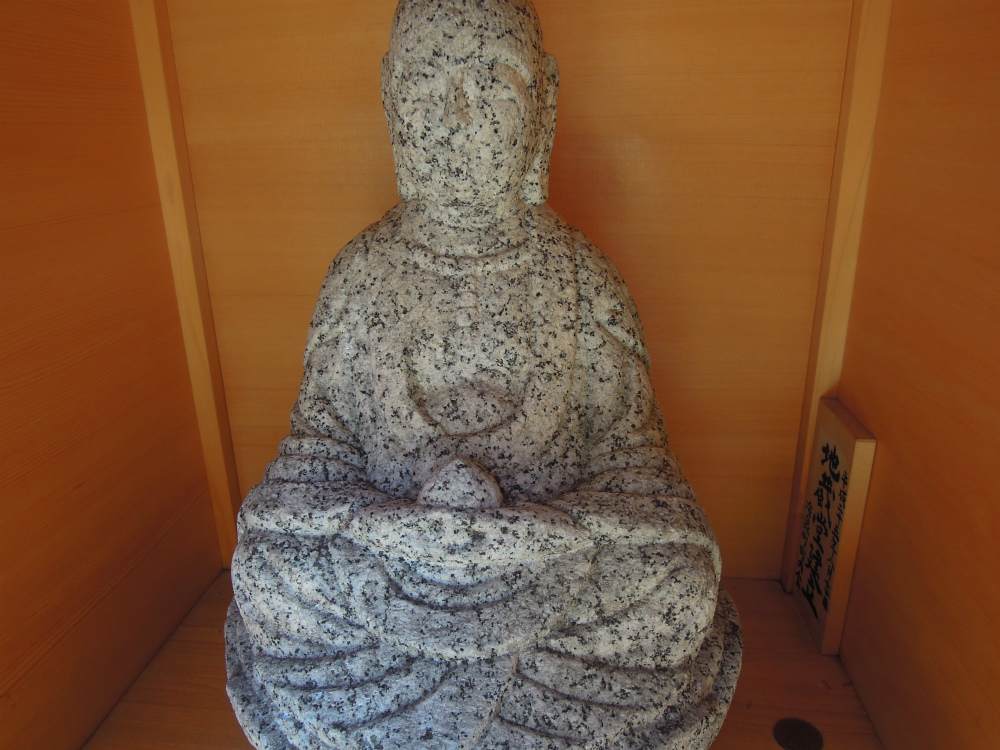 中のお地蔵さんは御影石造りでしょうか。珍しい感じがします。宝珠を両手で抱いています。