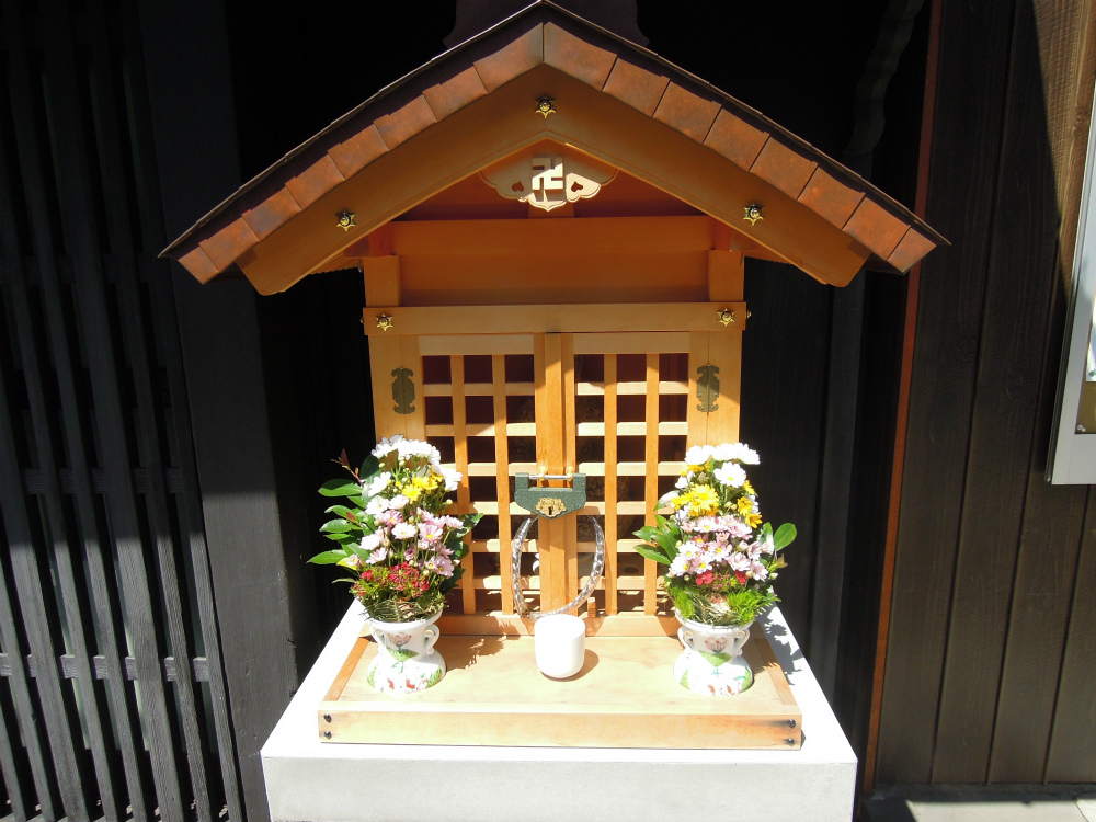 しっとりした町家の表にピカピカの祠。お家と共にお手入れが大変そうです。でもこのような京都らしい光景を大事にするのはとても素晴らしいことです。資金も必要ですし。