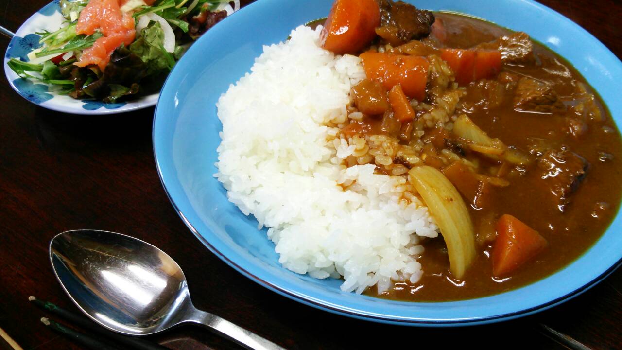 今日の織屋の賄いは、カレーライスでございました。人参が沢山余っていたので人参てんこ盛りです。