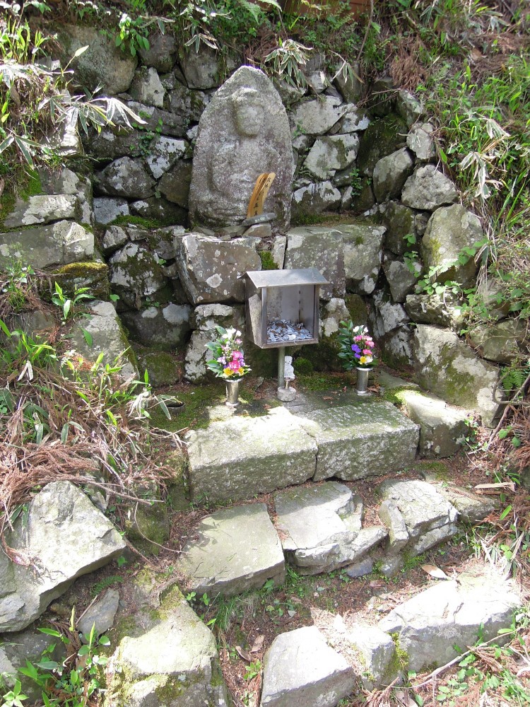 今日のお地蔵さんは比叡山ケーブルから延暦寺に向かう途中の山道にいはったお地蔵さんです。卒塔婆も立ってます。石積みが苔むして美しいです。