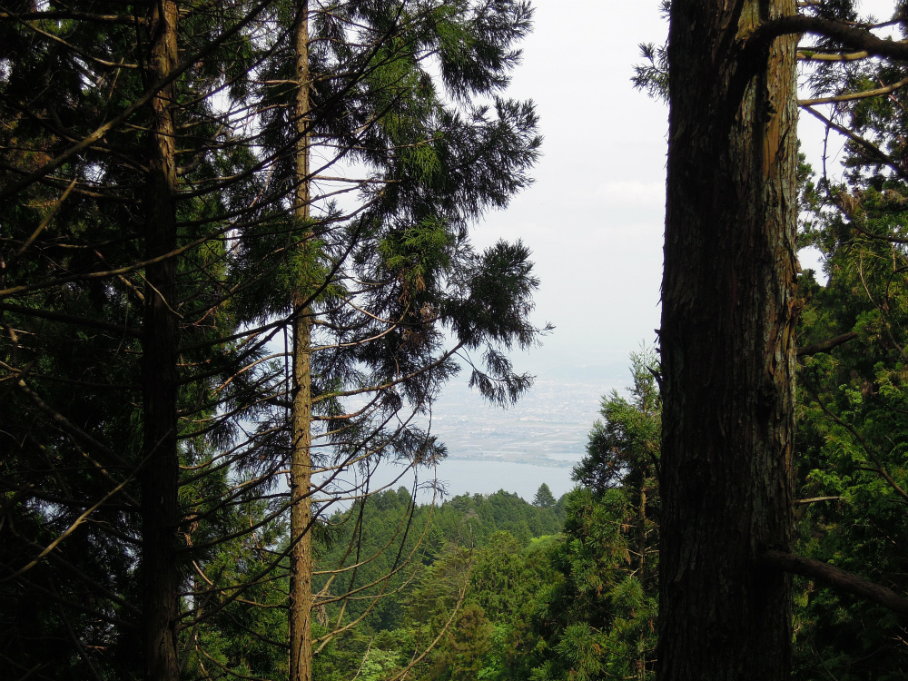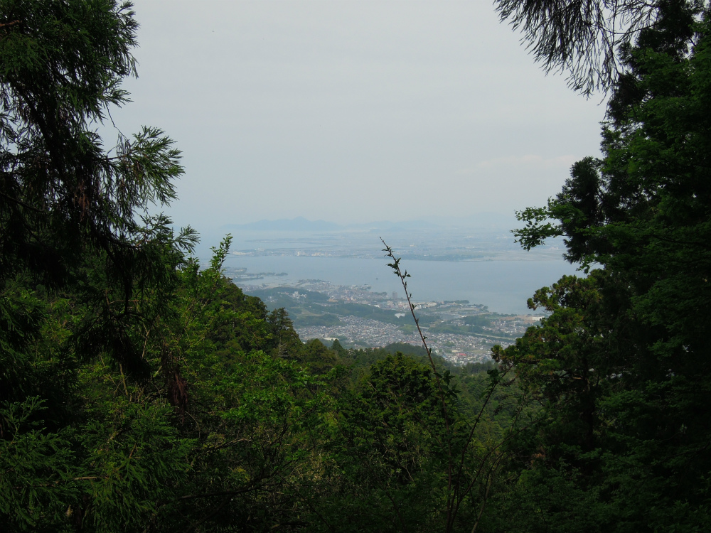 このお地蔵さんの目前には絶景が。比叡山山頂付近から見下ろした琵琶湖です。