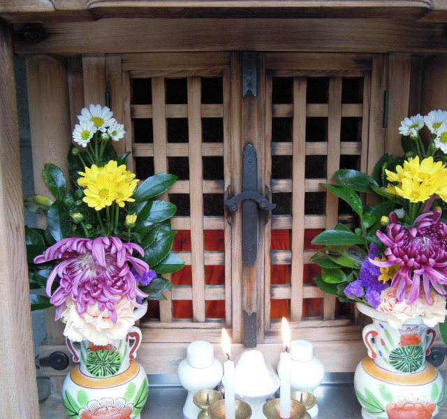 祠の上の方に白金の水引が結んでありました。神道・・・?