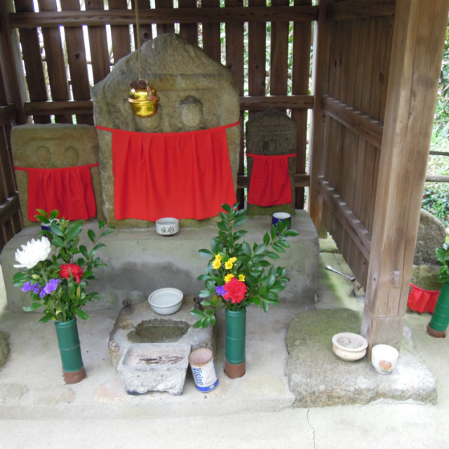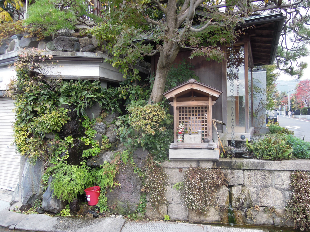 今日の織屋のブログは左京区聖護院東町のお地蔵さんです。すごく賑やかな所のお地蔵さんでしょ?見えますか?赤いバケツの所にはちっちゃなちっちゃな滝(?)があります。ちろちろと流れ出ているのです。