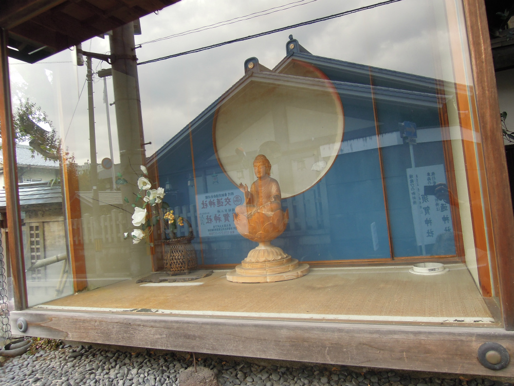 横のショーウィンドウには木彫りの蓮座も綺麗な如来様。