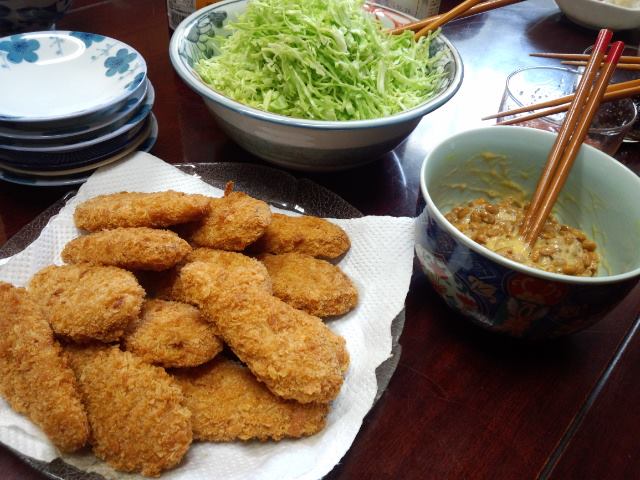 今日の織屋の賄いは、ささみの梅挟みフライ。キャベツの