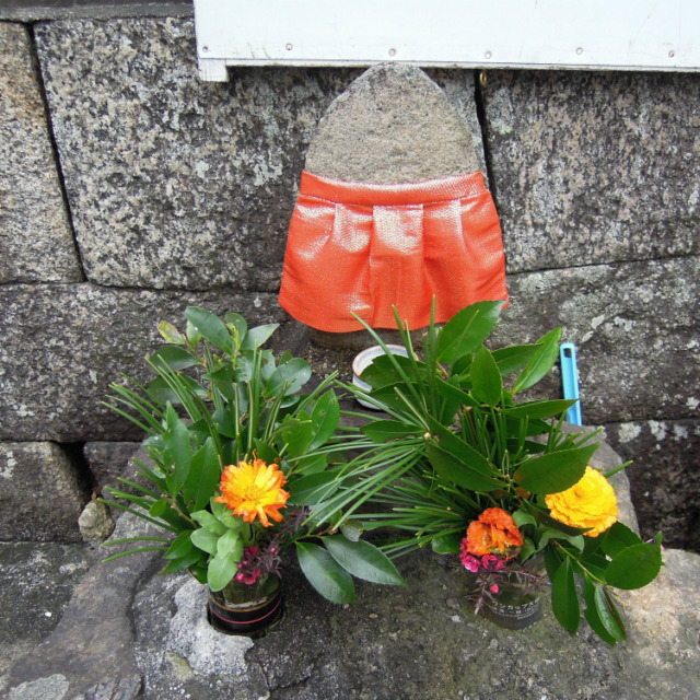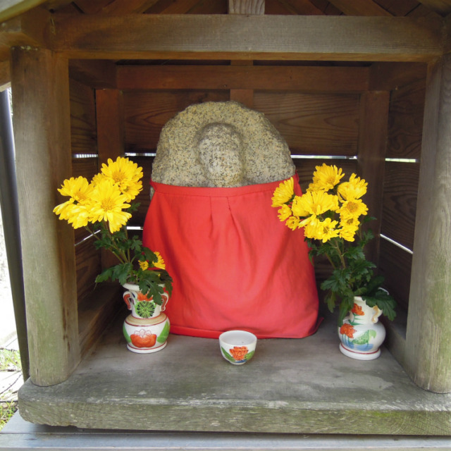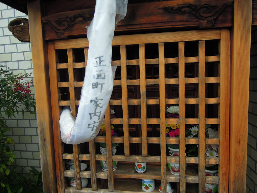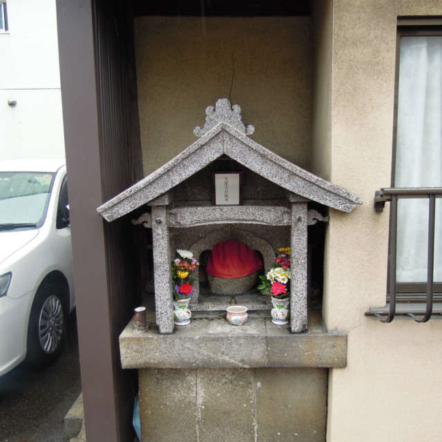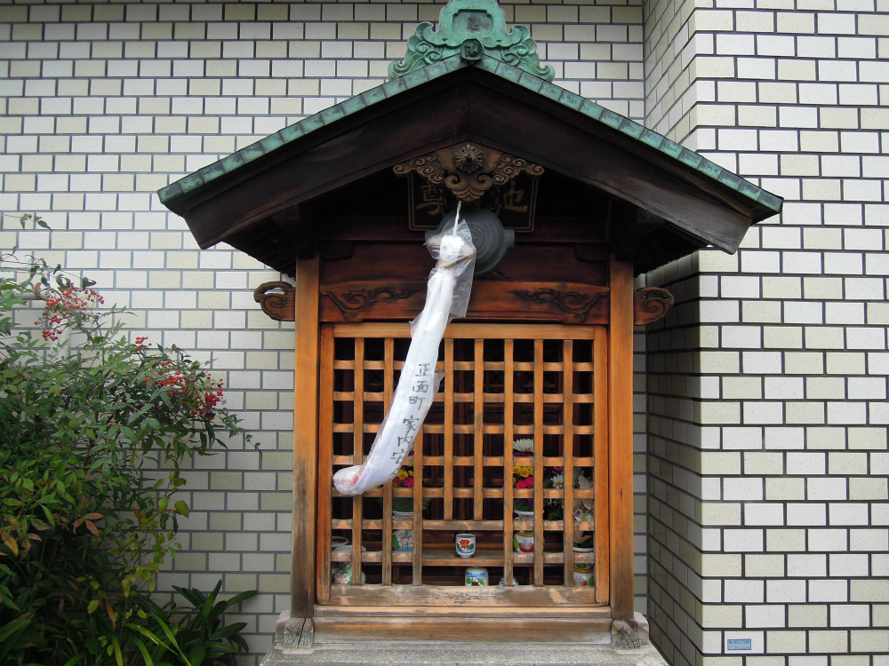 「正面町」という町内のお地蔵さん。正面町というのは「方広寺の大仏」の正面にあるからです。方広寺は秀吉が刀狩で集めた武器を使って造ったという大仏があったお寺で、今は無きお寺です。正面通と言う通り名も残っています。
