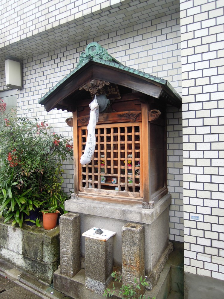 今日の織屋のブログは東山区鞘町通五条下る四丁目正面町のお地蔵さんです。タイル張りのビルの前に鎮座してはります。