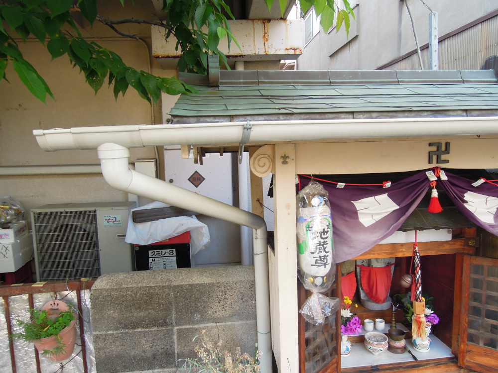 なんだか賑やかだし、屋根の樋が立派。なんでこんなに長いんやろ。