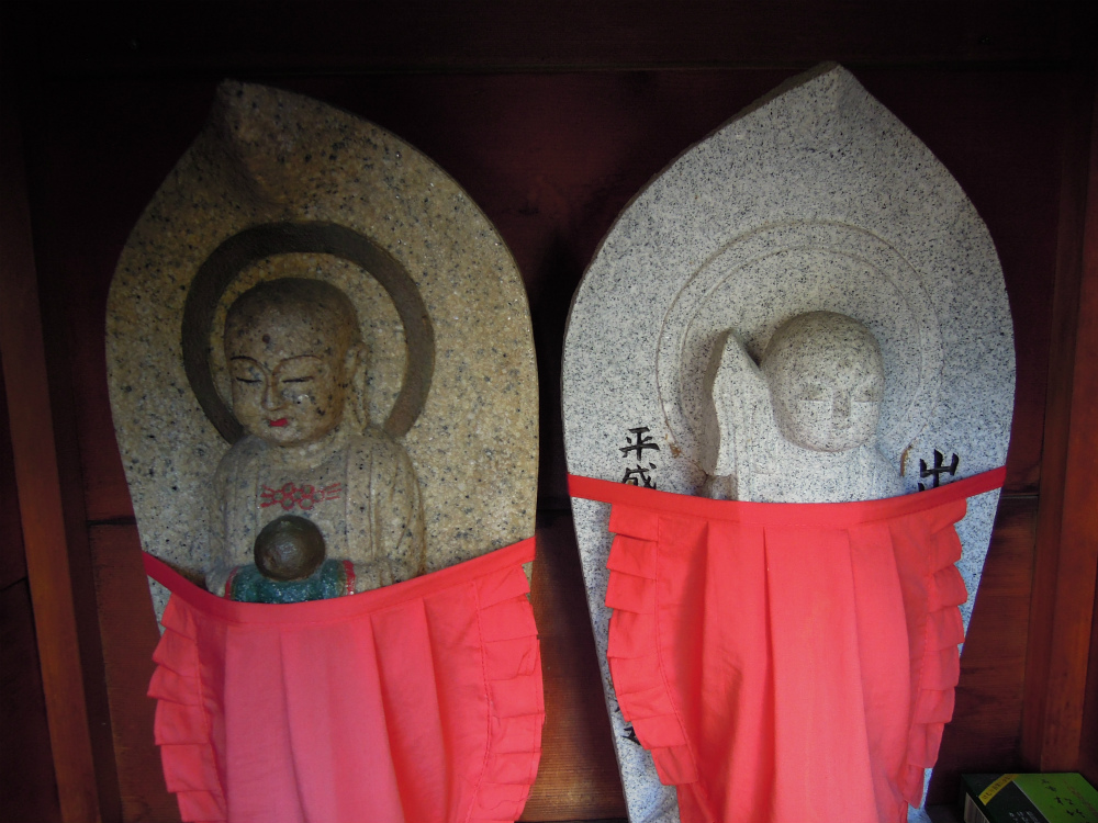 お地蔵さんは2体。割と新しいお地蔵さんに見えます。お顔もつるっと可愛らしいお顔です。