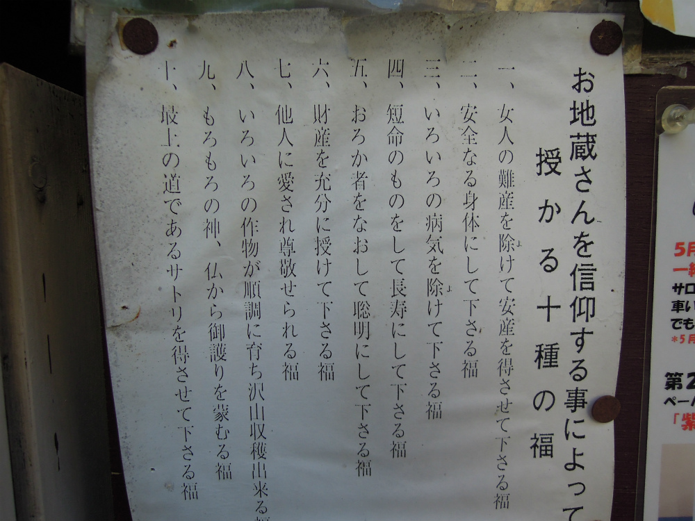 お地蔵さんを信仰する事によって授かる十種の福。