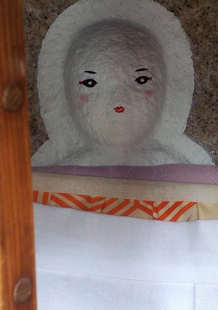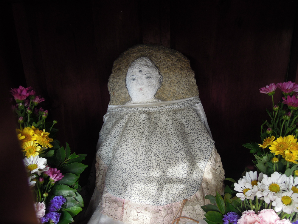 中のお地蔵さんはレースのついたおべべを着てとても心優しそうなほんわかした表情です。