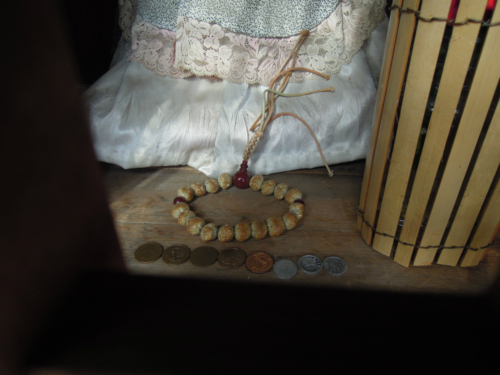 どなたが拝んでも良いようにお数珠も用意されています。お供えが53円。