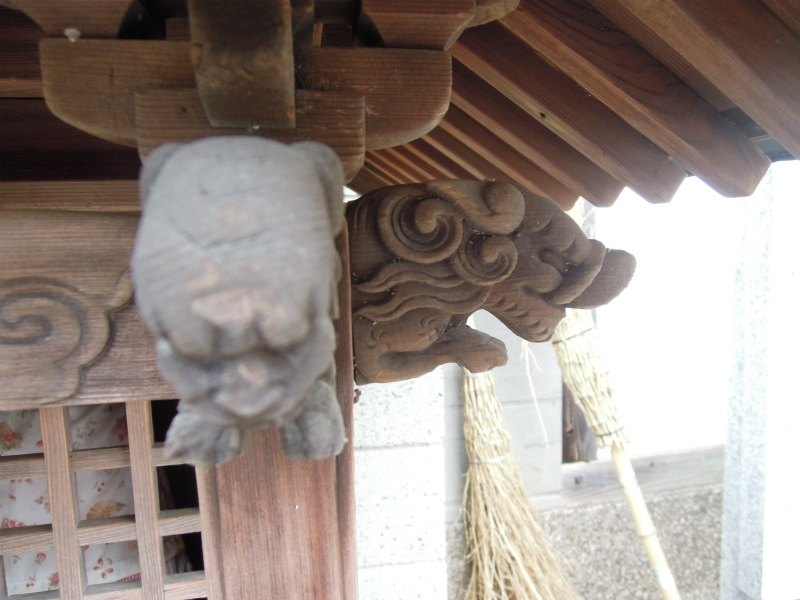 でも祠の飾り彫りは可愛い。象さんと獅子。
