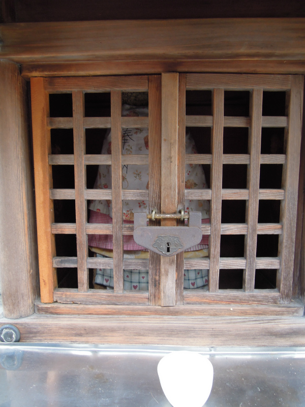 南京錠でガードもがっちり。中のお地蔵さんのおべべはレイヤード。かなりの重ね着です。