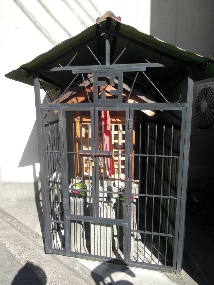 千本通りをずっと下ると三条通で東向きに斜めに曲がります。御院通りと名を変えます。その道中にいはったお地蔵さん。御院通り沿いです。お隣は銀行さん。