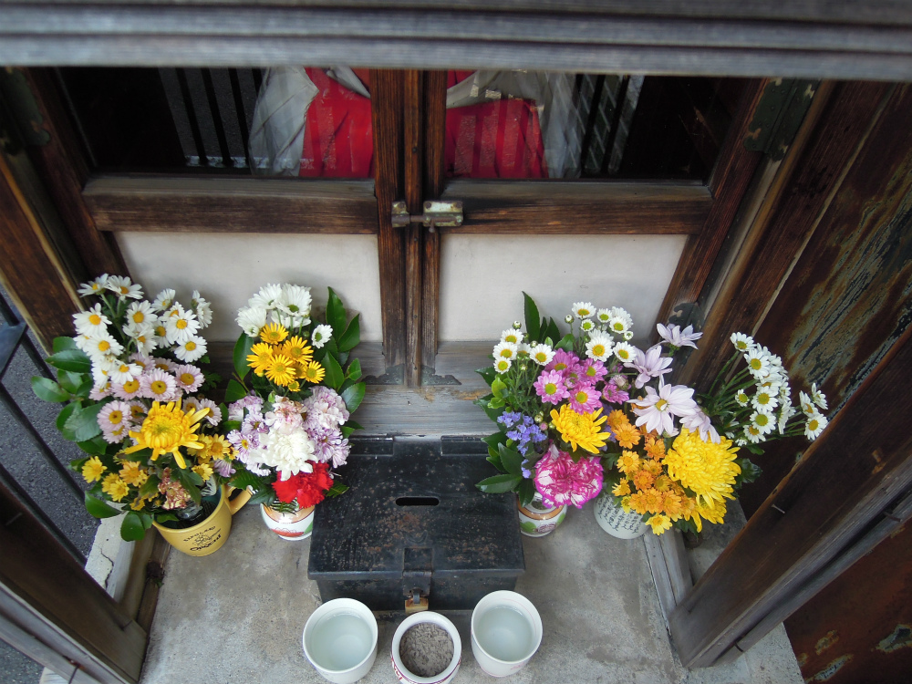 お花が沢山飾られていると嬉しいです。京都はお地蔵さんや仏壇、神棚の為に仏花や榊を振り売りにきてくれる花屋さんがあります。昔は大原女が有名でした。今でも大原からきはるのかしら?