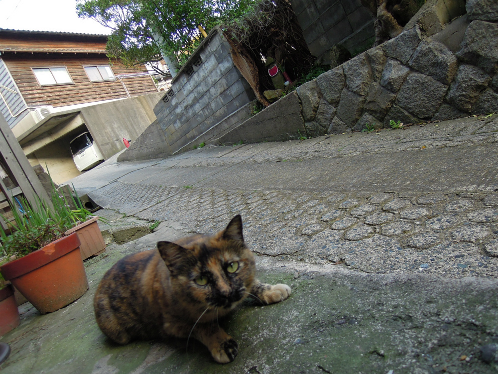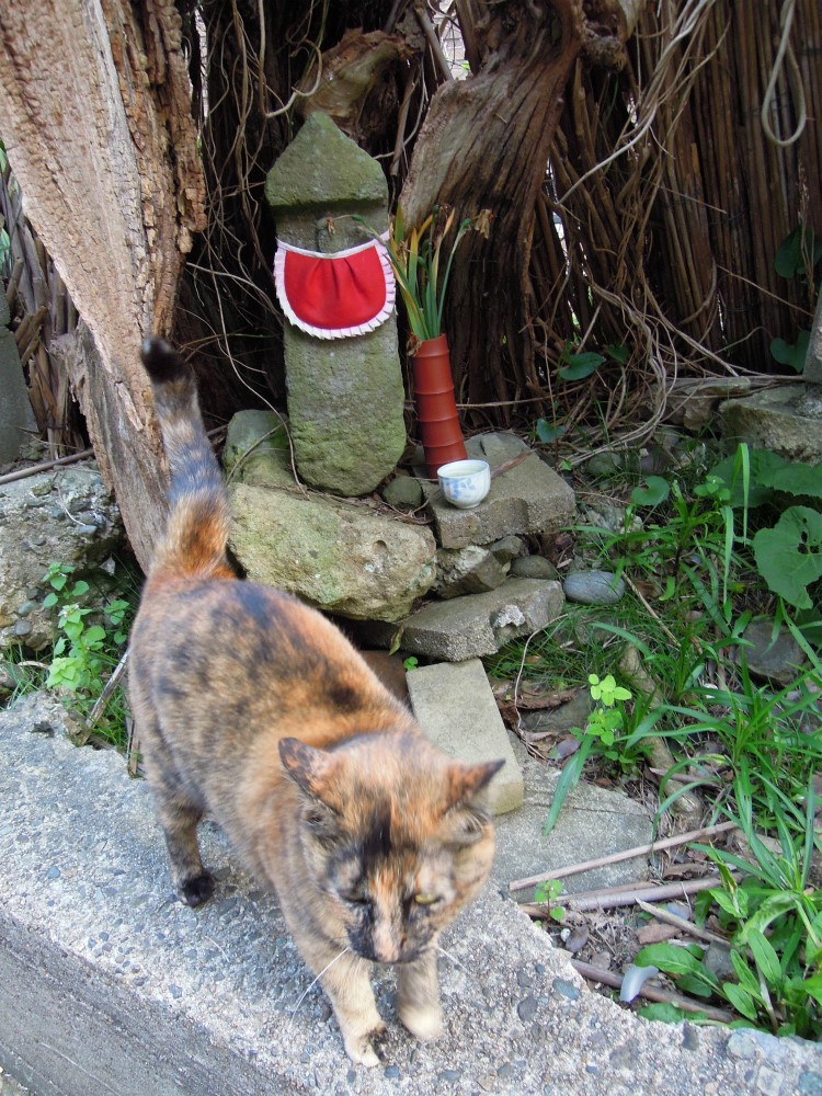 私が、「お地蔵さんいはるやんか~」と写真を撮っておりましたら、とても人懐っこい猫ちゃんがお地蔵さんの前まで来てくれました。もう、むっちゃ可愛い~。