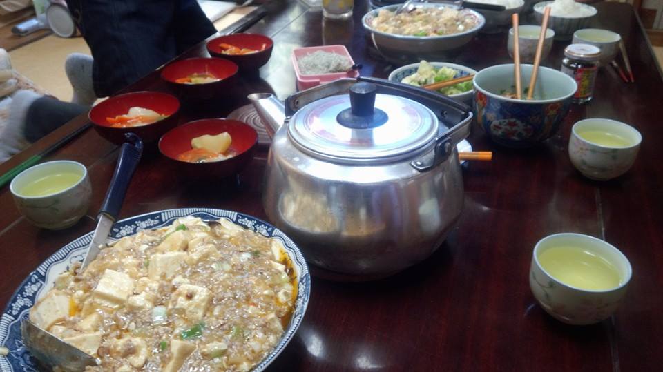 今日の織屋の賄いは麻婆豆腐。手前が辛めで奥が甘囗。珍