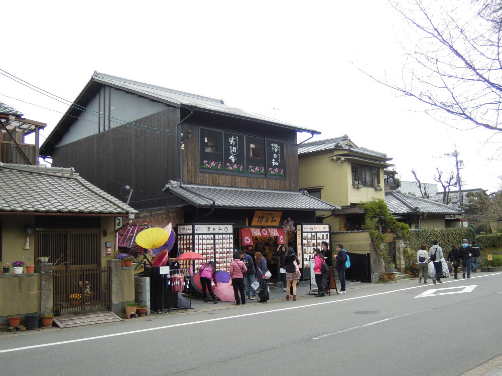 お地蔵さんのお向かいさんは嵐山らしいお土産やさんです。祇園もそうですが、嵐山も中国語の嵐でした。中国の方々の勢いはすごいものがありますね。
