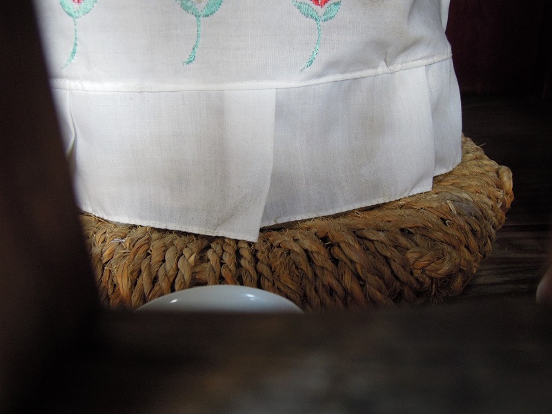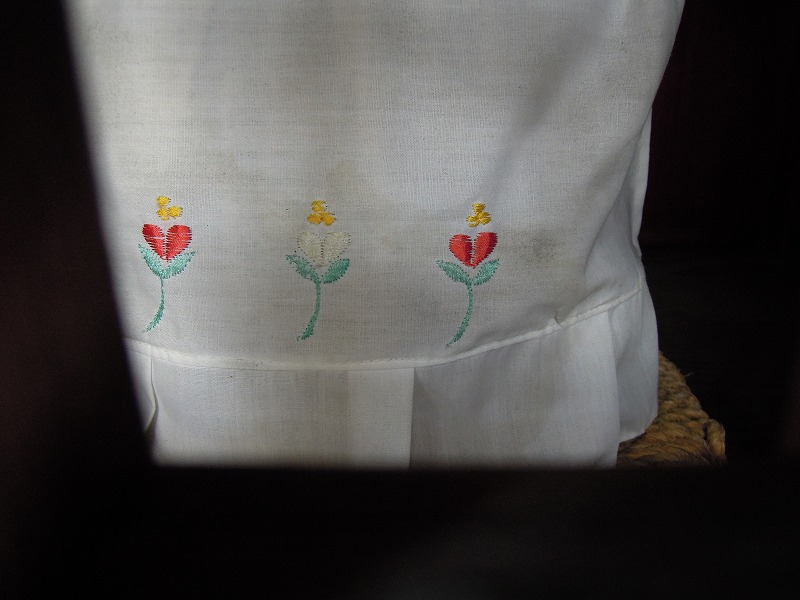 金襴地ではないけれど珍しい。白地に刺繍のおべべを着てはります。