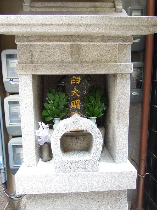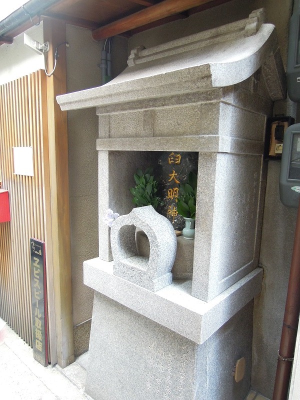 いはりました。「臼大明神」。「ウスの路地」と呼ばれている路地。
