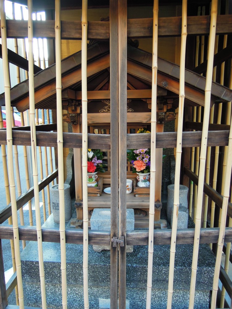 今日の京都の西陣 金襴織屋のお地蔵さん見物は弊社の近所。油小路元誓願寺下がる頭町のお地蔵さんでございます。のんびりしてそうなお地蔵さんですが、ガードが固いと色々治安の不安を感じます。