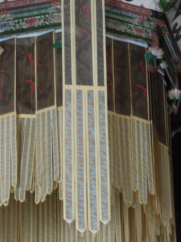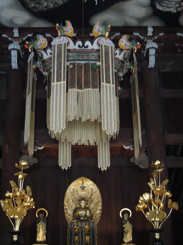 天井にはすごく立派な天蓋がきらめいています☆ところどころに金襴が使われています。