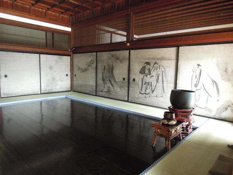 ↓襖絵は「竹林七賢図」床のぴかぴかな事!