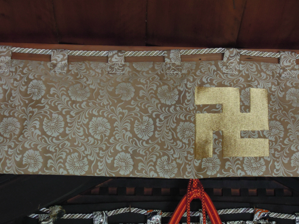 さて、金襴織屋の岡本織物、金襴を探して日々カメラを片手に周っていますが金襴地発見です。ご本尊の写真の奥です。藤が七宝に配置された紋様の金襴。昔から藤の紋様は愛されてきました。しっとりと美しい紋様ですね。