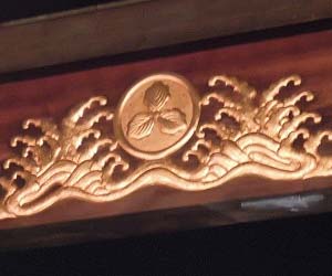 この本堂入り口屋根の下が面白い建築様式です。うねうねと波を思い出させるような。