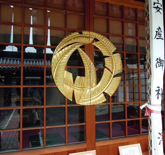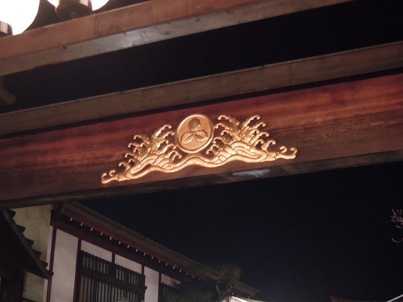鳥居にきらりと光る波の紋に三つ柏。さすが海の神。ゑびすさんです。
