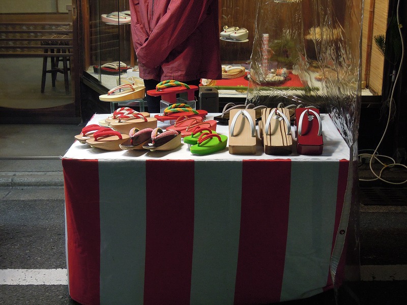 これは本格的な下駄屋さん。自前のお店の前で夜店を出してはりました。ぽっくりが可愛いです。