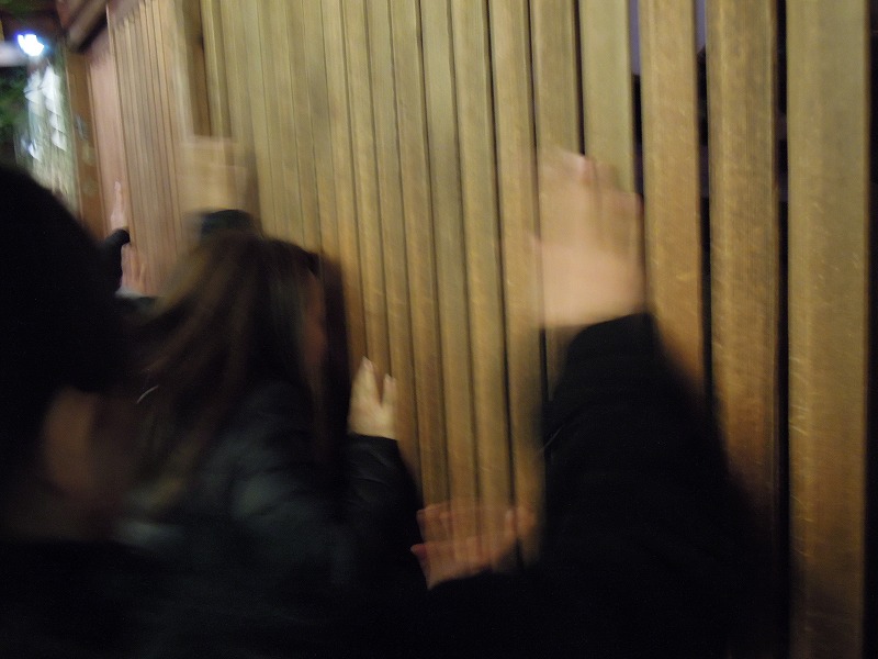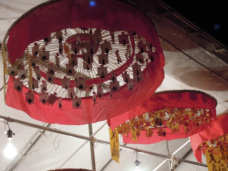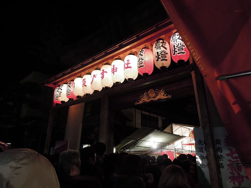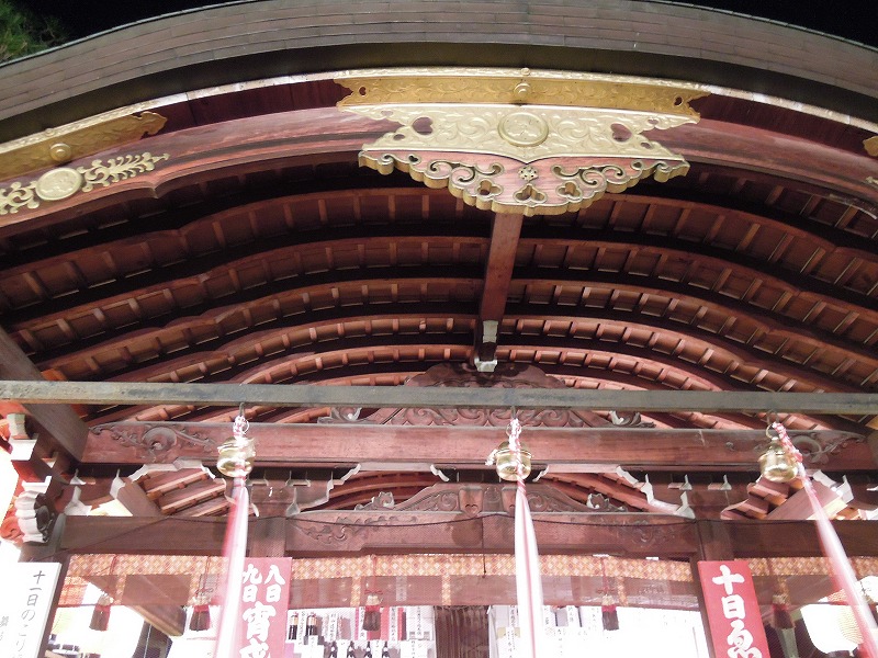 白熱灯にこの朱がいいんですよね~。ここらへんまでくると「しょ~うば~い は~んじょ~う ささもってこい」の声(スピーカーから)が聞こえて来ます。