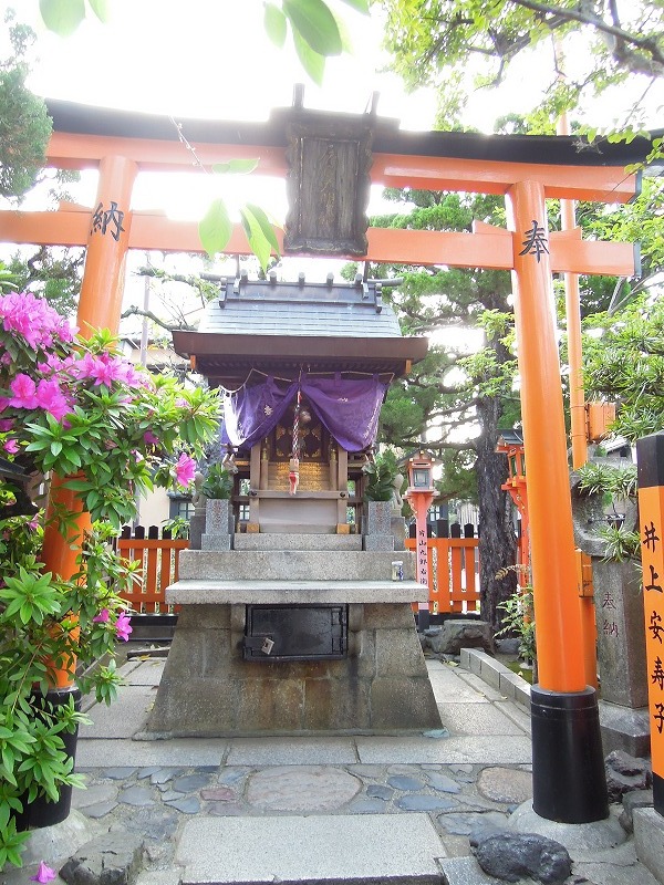 辰巳神社は京都御所から見て「辰巳」の方角にあるらしいです。伎芸上達のご利益があると言われ、ここらへんは「祇園」というか花街ですから芸舞妓達か崇敬されています。この写真でお参りしようとしている着物姿は残念ながら芸舞妓ではなくて私です。