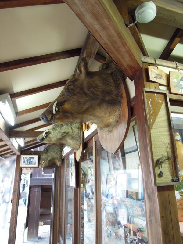 猪人形は良いとして、上を見上げると猪の剥製が壁から突き出たりしていて、子供が怖がるんですわ~。実は私も苦手なんです。