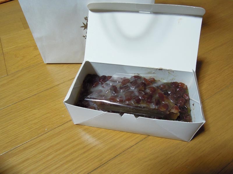 ういろうのような小麦粉を蒸し上げた生地に小豆がのっています。