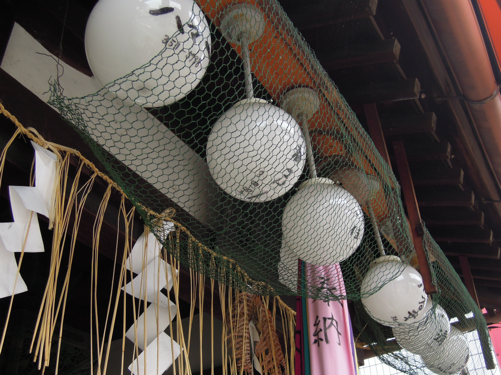 京都にはこういう丸い電気の傘が多いんです。可愛いですよね。奉納された方々の名前が書いてあります。
