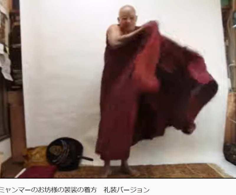 袈裟(けさ)について ミャンマーのお坊様の袈裟の着方。 in西陣