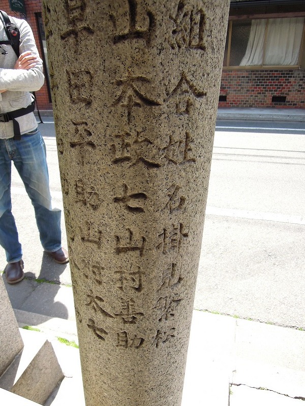 こちらの石柱は奉納しはった薬問屋さんたちの御名前でしょうか。