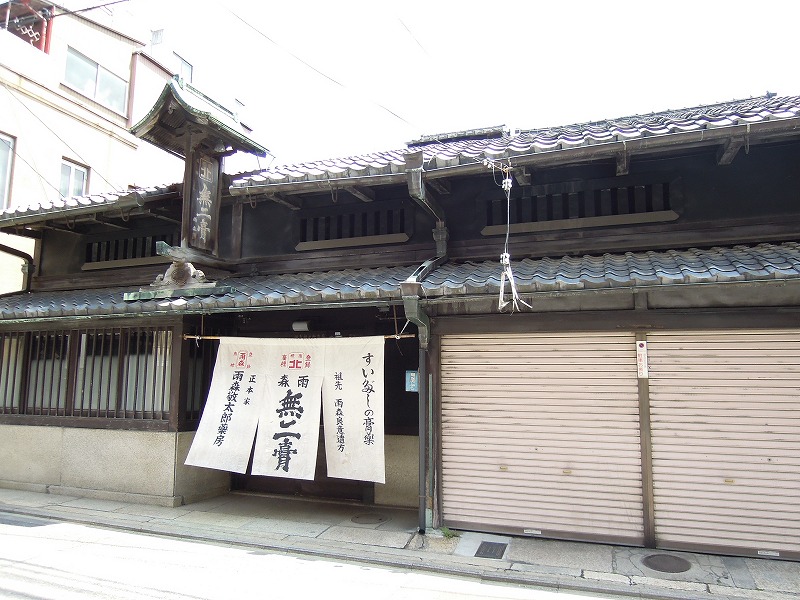 ↓の漢方薬屋さんは車屋町二条下るの雨森敬太郎薬房(無二膏)さん。いつ拝見しても渋いたたずまいです。傷薬を売ってはります。
