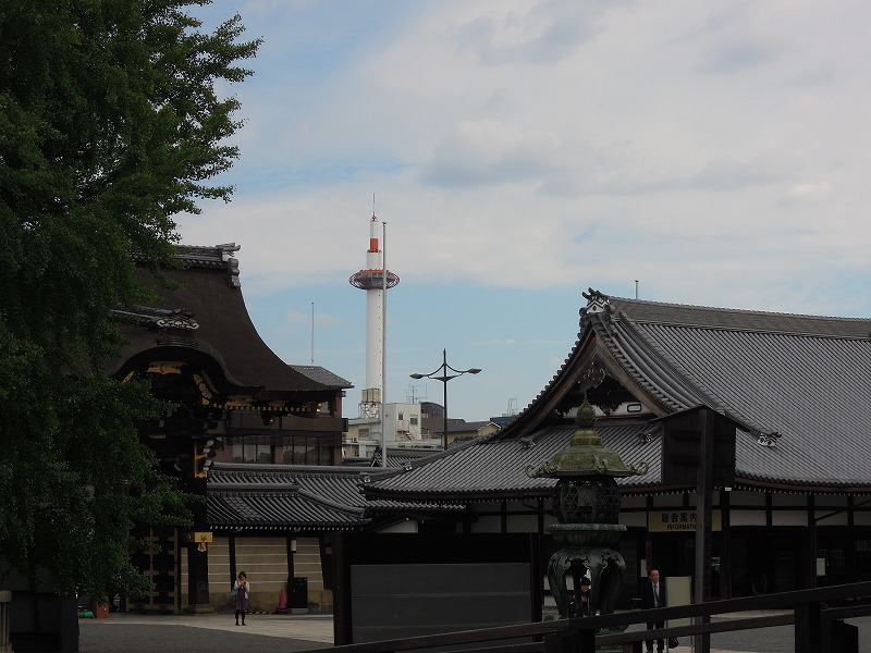 西本願寺は京都駅の近くです。京都タワーが望めます。